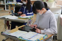 5年生は年間を通して稲作の学習をしてきました。その中で、稲作に携わる人たちの苦労や喜び、食の大切さなどについて深く学ぶことができました。その学習の成果を、タブレットのプレゼンソフトを使い、感謝の会で発表しました。地域の「田んぼの先生」お二人にも来ていただき、お礼の手紙も渡しました。また、タブレットの音楽アプリを使って合奏も披露しました。楽しく思い出に残る会となりました。