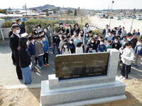 そのあと、校庭(校門の横)で記念碑の除幕式を行いました。3,2,1で一斉に除幕された記念碑を見て大きな歓声があがりました。子供たちはきっといつか、この記念碑のもとに集まり、思い出を語り合うことでしょう。