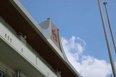 今日(31日)は掲揚塔に校旗を掲揚しています。